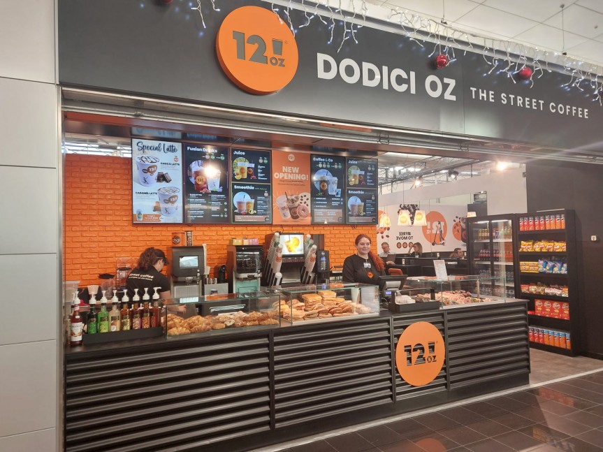 12oz è il tuo nuovo modo di goderti l'attesa del tuo volo. 12oz unisce la velocità del bar all’italiana con le richieste delle nuove generazioni, senza dimenticare la qualità: ogni bevanda, sia calda che fredda, è preparata con ingredienti selezionati e macchine brevettate che sempre garantiscono lo stesso gusto in ogni cup.